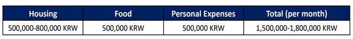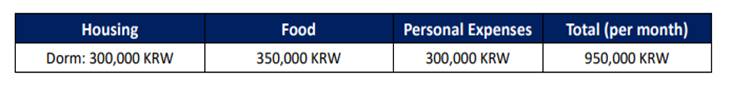 4. 费用:免学费,住宿费公司按照6000元人民币/人(安山校区)、12000元人民币/人(首尔校区)标准予以资助,其他费用自理。
