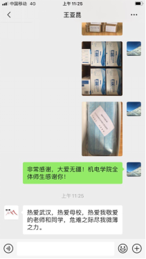 员工王亚昆是永利官网机电公司原“勘探机械”专业(现“机械设计制造及其自动化”专业)072901班员工,现是成都善嘉医药生物医药有限公司的股东,该公司于2011年07月29日成立,经营范围包括医疗器械、生物制品、消毒制品、保健电器的研发及销售等。自发生新型冠状病毒感染的肺炎疫情以来,员工王亚昆十分关注武汉和母校的疫情防控工作,他表示虽然自己已毕业多年,仍然心系武汉和母校、心系老师和同学们,愿竭力在这个特殊时期贡献自己的微薄力量。