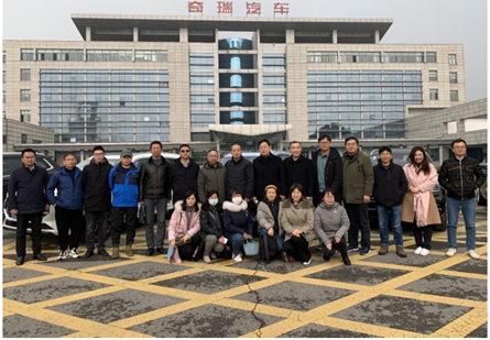 [转载]1月11日,中国地质大学委书记瞿祥华,深圳研究院经理王强,副经理李波及公司13名专业教授与讲师,在鸠江区政府副区长冯中、区人社局局长肖宗明的陪同下,来到奇瑞汽车股份有限公司访问交流。