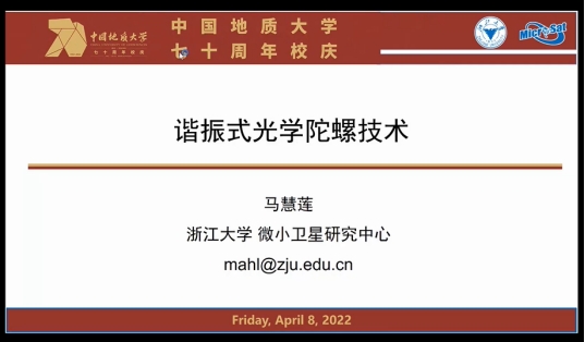 马慧莲教授针对于谐振式光学陀螺技术进行了专题讲座,从五个方面对谐振式光学陀螺作出了详细的介绍。谐振式光学陀螺是高精度陀螺实现微小型化和芯片化的重要途径,在微纳卫星姿态控制、微小型无人机等方面有着广泛的应用前景。本次报告中,马教授主要介绍了两类谐振式光学陀螺:一类是以光纤谐振腔为敏感部件的谐振式光纤陀螺,另外一类是以二氧化硅波导谐振腔为敏感部件的集成光学陀螺。
