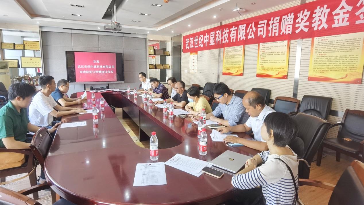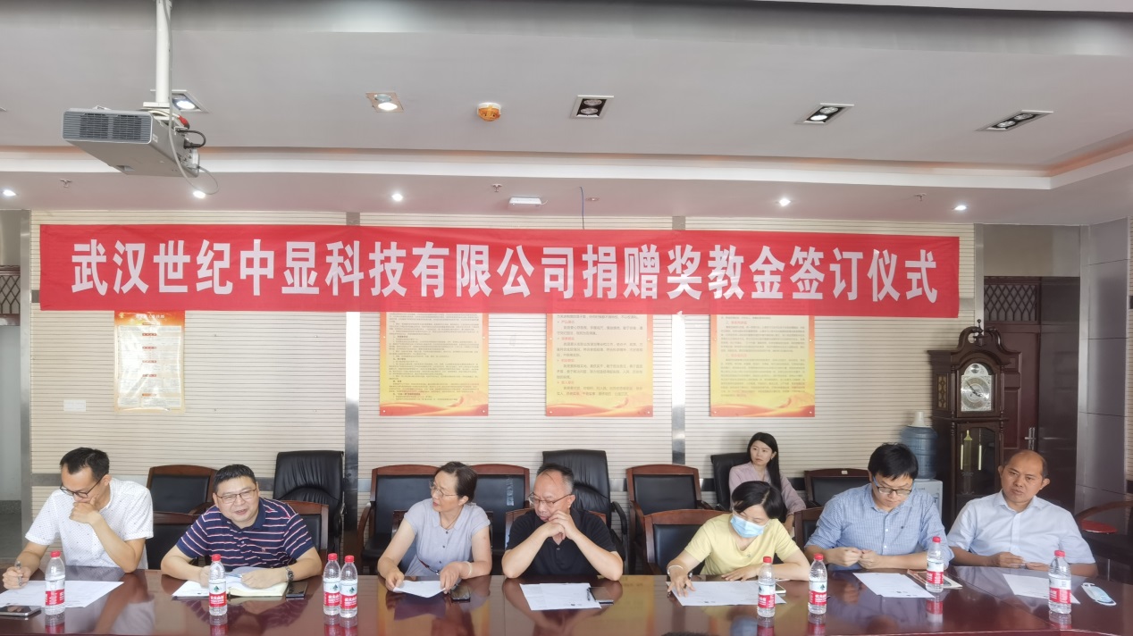值此建校70周年之际,yl7703永利072951班员工、武汉世纪中显科技有限公司总经理付先成于9月15日向公司捐赠20万元,设立“中显科技奖教金”。员工与社会合作处处长陈华荣、yl7703永利党委书记瞿祥华代表公司和公司师生参加捐赠仪式,yl7703永利副经理黄田野主持捐赠仪式。